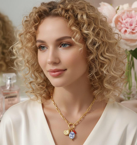 COLLIER AVEC MÉDAILLON EN PORCELAINE DE CAPRI ET EN ACIER INOXYDABLE 316L