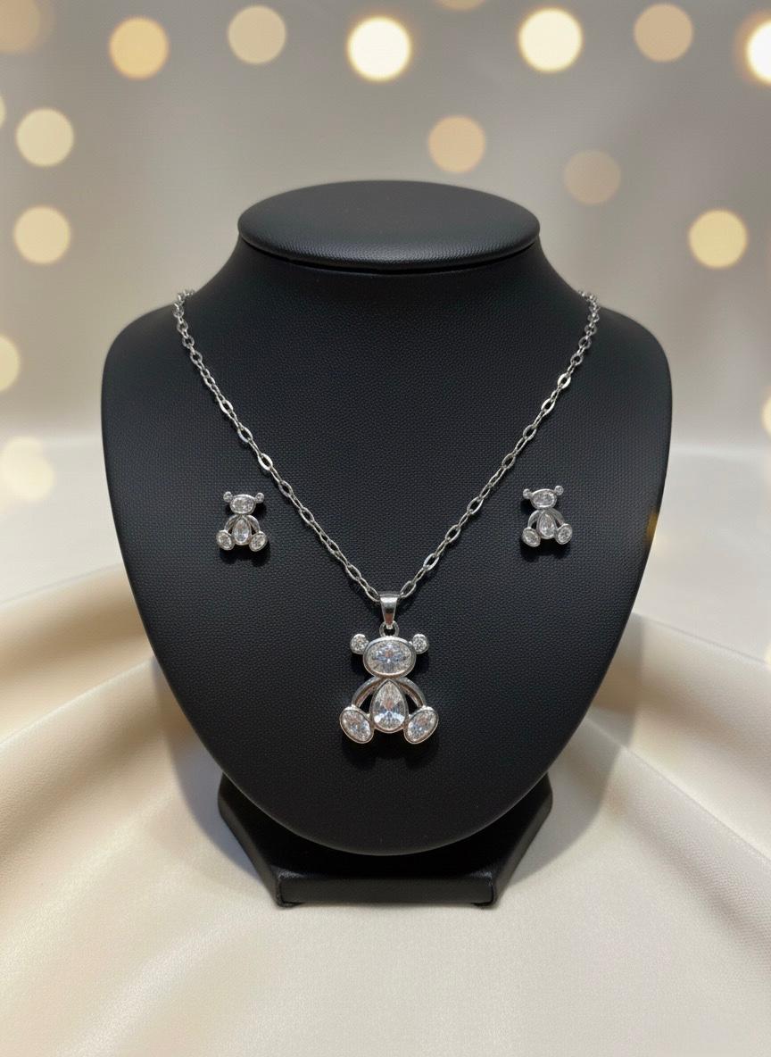 COLLIER ET BOUCLE D'OREILLE POUR FEMME EN ACIER INOXYDABLE 316L AVEC ZIRCONIUM